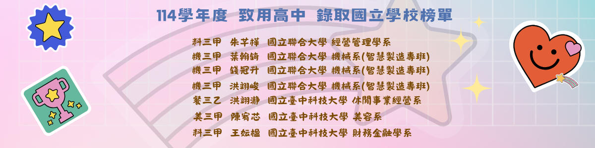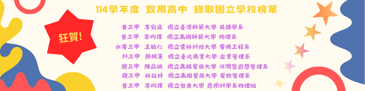致用高級中學114學年度參加各項比賽得獎一覽表