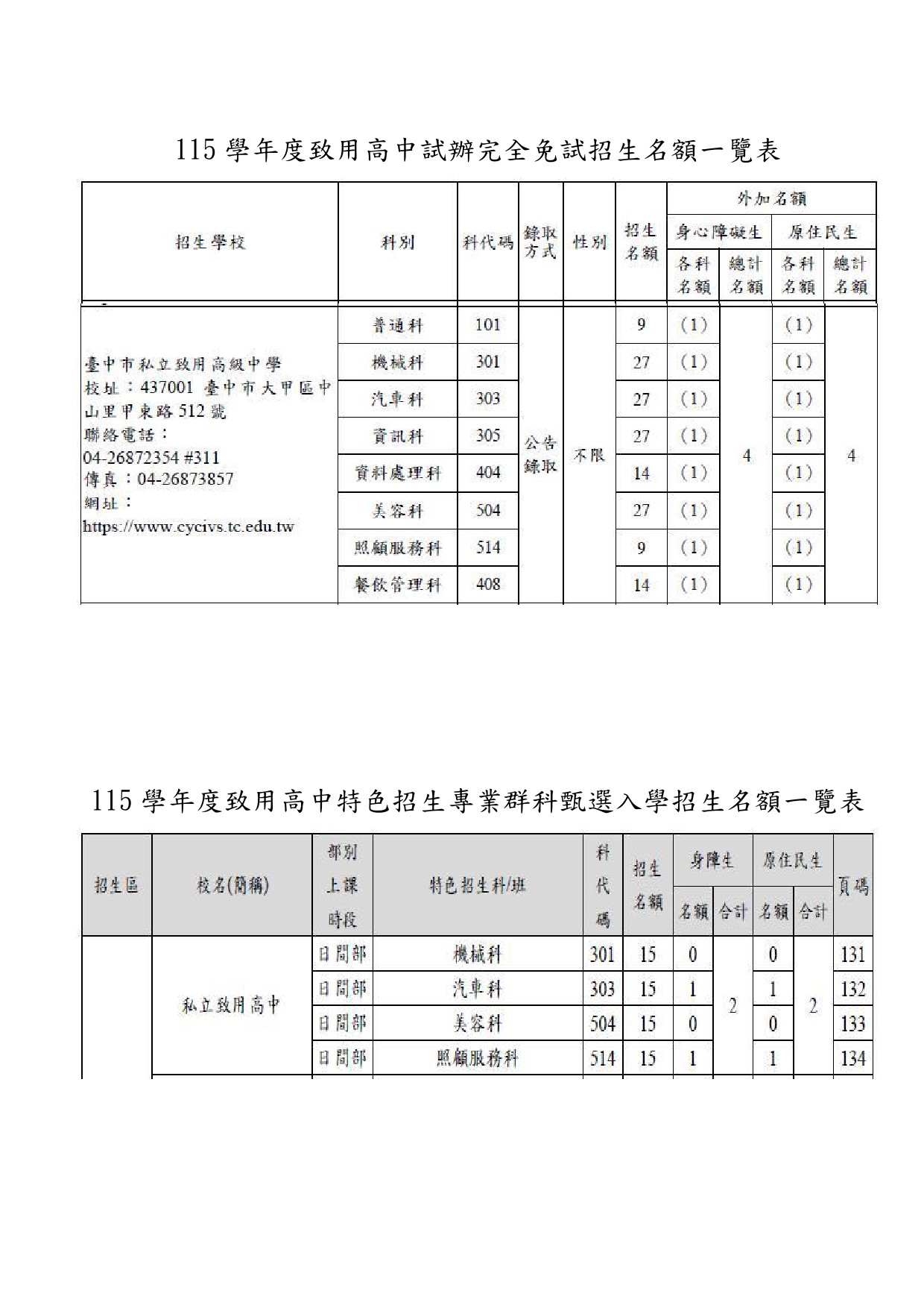 (2)115學年度高級中等學校特色招生專業群科甄選入學