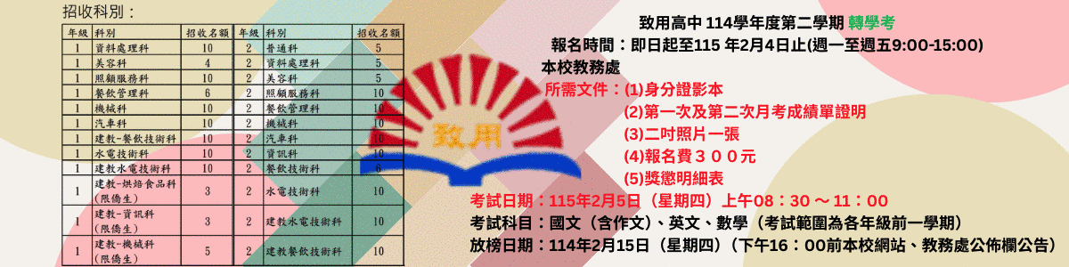 致用高級中學114學年度參加各項比賽得獎一覽表